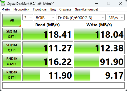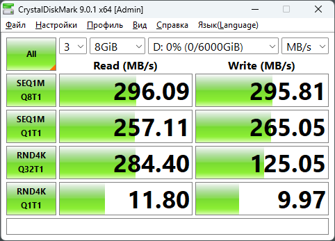 Теста производительности накопителя, скорость сети 2.5 Гбит/с